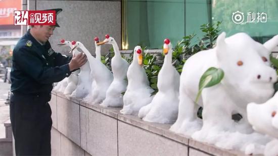 原標(biāo)題:下雪后,這位保安堆了個(gè)動(dòng)物園!萌得心肝兒都化了…