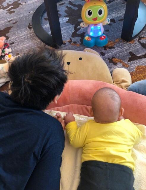 董子健與玩具爭(zhēng)寵 女兒肉嘟嘟后腦勺搶鏡