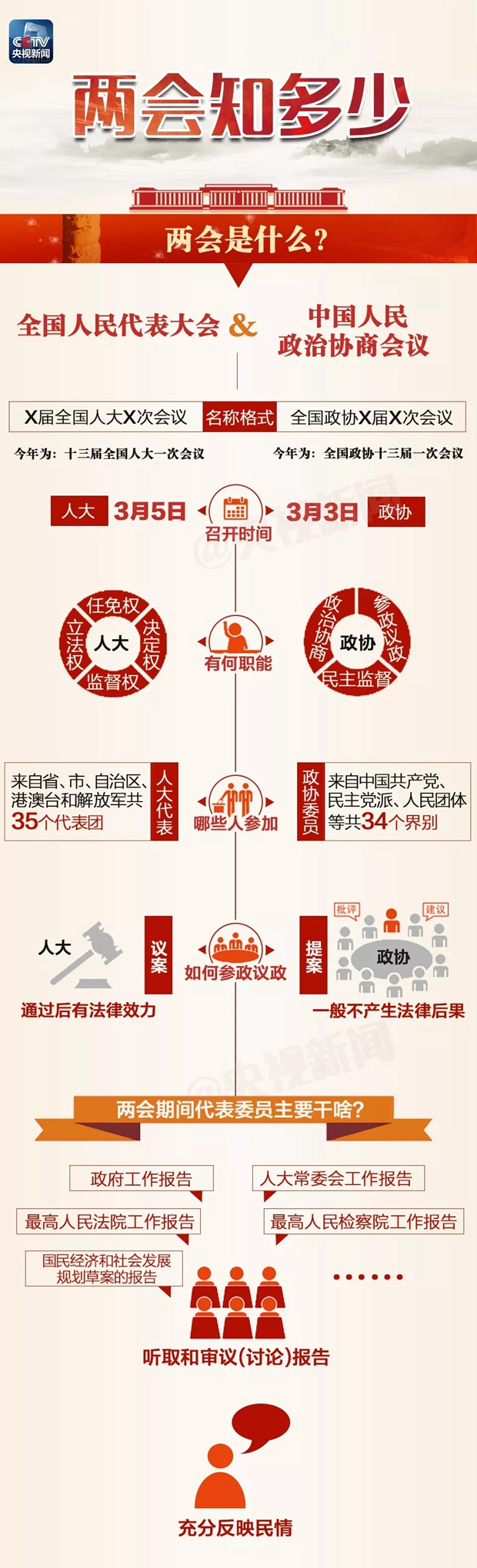 全國(guó)兩會(huì)年年開,但你知道這兩個(gè)“會(huì)”有何不同嗎?今年兩會(huì),除了新一屆全國(guó)人大代表和全國(guó)政協(xié)委員首次亮相之外,又有哪些值得關(guān)注的看點(diǎn)?