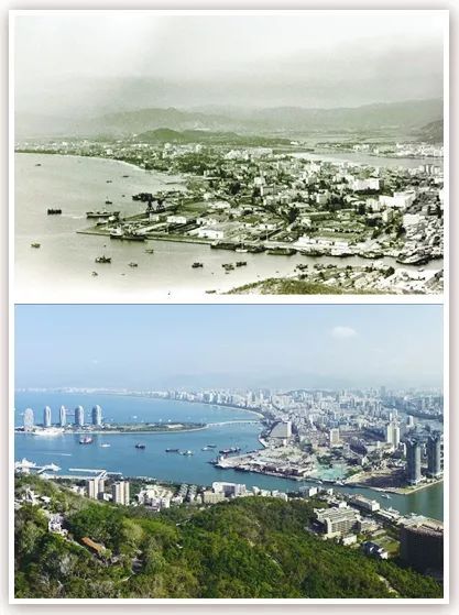 拼版照片為在三亞市鹿回頭景區(qū)鳥(niǎo)瞰三亞市景今昔對(duì)比(上圖為1991年2月新華社記者姜恩宇攝,下圖為2018年4月4日新華社記者郭程攝)。 新華社發(fā)