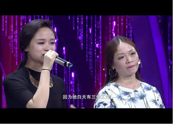 原來在父親去世多年后,母親再婚又組成了新的家庭,而再婚一事遭到了陳歡強(qiáng)烈的反對,母女間因此產(chǎn)生了心結(jié)。在舞臺上,陳歡說其實自己一直以來反對的原因是害怕母親再婚后會忽略她,讓已經(jīng)失去父親的她又失去母愛。直到自己上了大學(xué)后,才逐漸理解了媽媽當(dāng)時的選擇和做法。面對觀眾,陳歡說自己現(xiàn)在的心愿是與媽媽和繼父一家人一起拍一張全家福,一家人從此幸福地生活在一起。面對女兒的眼淚,陳歡媽媽也敞開心扉與女兒述說了自己的心里話,她回憶起多年前的往事,當(dāng)幸福美滿的家庭突遭變故,一下子什么事情都要陳歡媽媽來操辦,從一開始的不知所措,到最后堅強(qiáng)的挺了過來,多年來的艱辛,陳歡媽媽只說了一句“沒事了”,她讓現(xiàn)場所有人都重新體會到“女子本弱小,為母則強(qiáng)”這句話深刻含義。