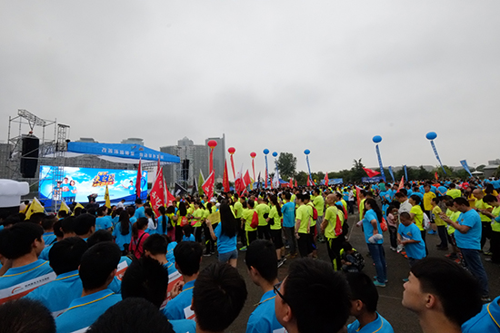 經(jīng)過了半夜的狂風(fēng)暴雨后,早上8點(diǎn),鄭東新區(qū)的空氣格外清新!雖然活動(dòng)9點(diǎn)開始,但此時(shí),cbd文化廣場(chǎng)已經(jīng)聚集了好幾千名參與者,他們有的是熱衷于環(huán)保的市民,有的是健身、跑步的愛好者,也有的學(xué)校、單位集體組織了方陣,提前趕到現(xiàn)場(chǎng)參加活動(dòng)。