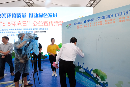 十一位領(lǐng)導(dǎo)共同啟動(dòng)了“《河南省公民環(huán)保行為準(zhǔn)則》百萬公民電子簽名墻”正式上線儀式,并在《河南省公民環(huán)保行為準(zhǔn)則》百萬公民簽名墻上,簽下自己的名字,成為首批在“百萬公民簽名墻”上簽字的環(huán)保志愿者!