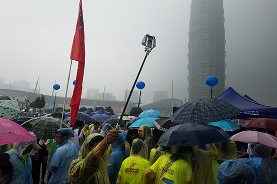 雨越下越大,考慮到安全因素,我們建議大家取消跑步,但一些市民堅(jiān)持從起跑線起跑,在狂風(fēng)暴雨中,完成了這次比賽。