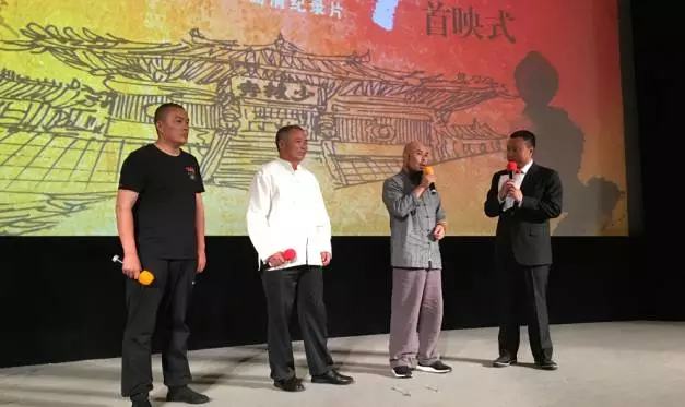 在掌聲中,河南電視臺(tái)、央視紀(jì)錄頻道的全體領(lǐng)導(dǎo)等與功夫名家們上臺(tái)共同啟動(dòng)首映。