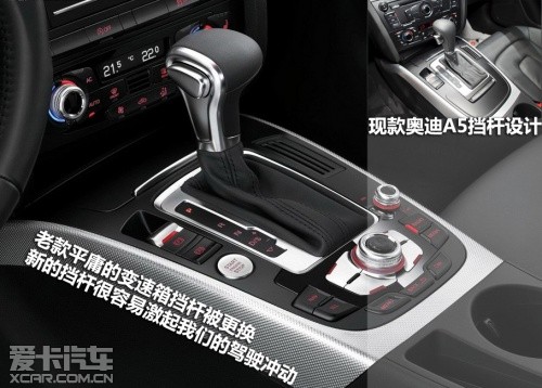 雖然新款奧迪A5的中控臺布局沒有進行新的設計,但是新車采用了全新設計的儀表盤,一體化設計的儀表與內飾的融合更加緊密。另外老款平庸的變速箱擋桿被更換,新的擋桿很容易激起我們的駕駛沖動,另外新車在MMI操作面板的很多細節(jié)上也有變化。
