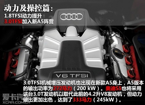動力及操控篇:1.8TFSI動力提升 3.0TFSI加入新A5陣營 底盤重新調教