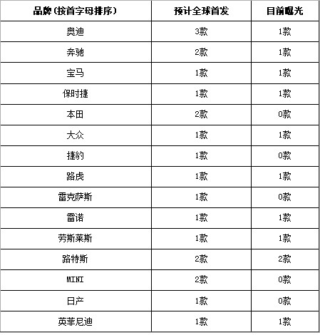 此前的2012北京國際車展新聞發(fā)布會上,主辦方就已正式宣布,此次展會將會有89款全球首發(fā)車型(量產(chǎn)車)現(xiàn)身,其中跨國公司的全球首發(fā)車型達到了14款之多。隨著車展前最后一周的到來,這些重磅車型也逐步浮出水面,目前我們能夠確認的跨國公司全球首發(fā)車型有11款,當然我們不能排除這些曝光或即將曝光的車型會出現(xiàn)跳票的情況,但無論如何,我們不妨提前預習一下這些代表未來的車展主角: