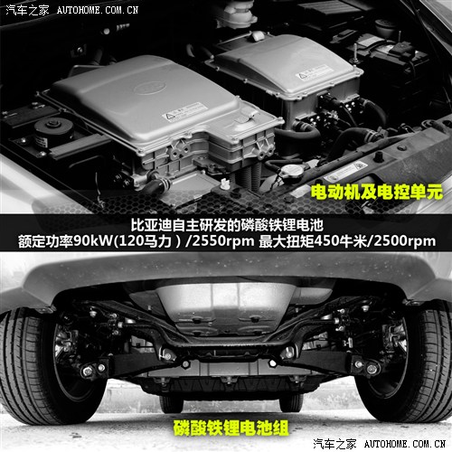 這輛比亞迪e6純電動車有一套由比亞迪自主研發(fā)的磷酸鐵鋰電池,額定功率90kW(120馬力)/2550rpm,最大扭矩450牛米/2500rpm。巨大的電池組就被設(shè)計在車身底部中段的位置,電池組外面帶有鋼制保護殼體,避免電池組直接受到撞擊和剮蹭。由于巨大的電池組,比亞迪e6車身質(zhì)量達到了2.3噸,論重量和大眾途銳和寶馬X6達到了一個數(shù)量級。