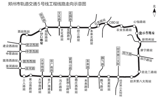 鄭州地鐵5號線是鄭州地鐵線網(wǎng)中唯一一條環(huán)形線路,與其他地鐵線路全部有換乘站。