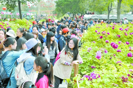4月4日,在洛陽王城公園,來自四面八方的游客在觀賞盛開的牡丹花。4月5日,為期1個月的第30屆洛陽牡丹文化節(jié)將隆重開幕,洛陽市各大公園的各色牡丹也將陸續(xù)綻放,中外游客盡可以感受古都洛陽的今日風(fēng)采,觀賞洛陽牡丹的嬌艷芳容。 河南日報農(nóng)村版記者 楊遠(yuǎn)高 攝