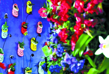 4月6日,“2012洛陽·中國名花展”在洛陽國家牡丹園開展,15天的展期將展出91類、200余種國內珍奇名貴花卉。圖為展出的“仙履芳蹤”插花造型。 新華社發(fā)