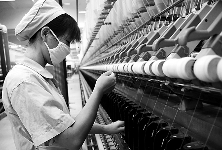 3月26日,位于鄧州市產(chǎn)業(yè)集聚區(qū)內的永泰棉紡股份有限公司員工正在趕制訂單產(chǎn)品?! ∈⒅緡?攝