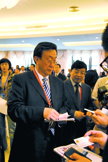 論壇開始前,郭庚茂一走進會場,就被眼尖的代表們認出,不斷有人主動去交換名片。論壇剛一結(jié)束,臺上嘉賓和臺下聽眾“呼啦”一下都擁到郭庚茂身邊,有的要名片,有的要合影,有的要預約采訪。郭庚茂微笑著一一滿足大家的要求。