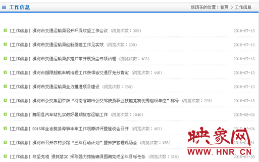 映象網(wǎng)漯河訊(記者 常衛(wèi)東)近日,有網(wǎng)友向記者反映,在瀏覽漯河交通運(yùn)輸局網(wǎng)站看相關(guān)政策時,發(fā)現(xiàn)網(wǎng)站里的幾個欄目都是很久的信息,有的是空白。