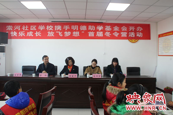映象網(wǎng)訊(記者 王文凱 通訊員 尚瑩 蔣艷艷)1月20日上午,以“放飛夢(mèng)想 快樂(lè)成長(zhǎng)”為主題的滎陽(yáng)市索河中心校冬令營(yíng)活動(dòng),在索河辦廣場(chǎng)社區(qū)舉行開(kāi)營(yíng)儀式。滎陽(yáng)市僑聯(lián)主席胡建華、滎陽(yáng)市教體局職教科科長(zhǎng)魯標(biāo)、辦事處副主任陳明霞、索河中心校校長(zhǎng)馬叢敏、西街小學(xué)30名留守兒童、家長(zhǎng)代表以及13位志愿者老師參加。