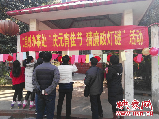 活動(dòng)現(xiàn)場各式彩燈和燈謎營造了濃厚的節(jié)日氣氛,大家早早就到了現(xiàn)場,一個(gè)一個(gè)饒有興趣地查看燈謎,三三兩兩地討論謎底。50條廉政燈謎內(nèi)容豐富,風(fēng)趣貼切,以黨紀(jì)、法規(guī)和黨風(fēng)廉政建設(shè)等有關(guān)知識(shí)為內(nèi)容,將廉政文化融入了傳統(tǒng)節(jié)日慶祝活動(dòng),在寓教于樂中受到警示教育。