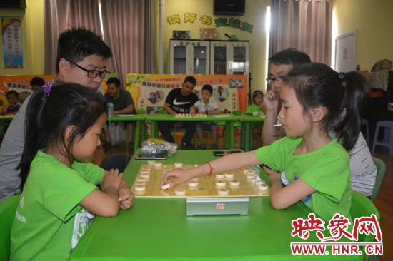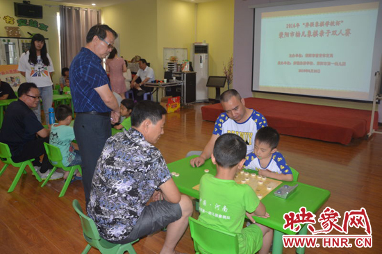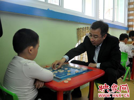 滎陽市長(zhǎng)王新亭與孩子一起下象棋