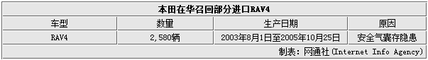 《豐田RAV4安全氣囊存隱患 4S店即將召回》