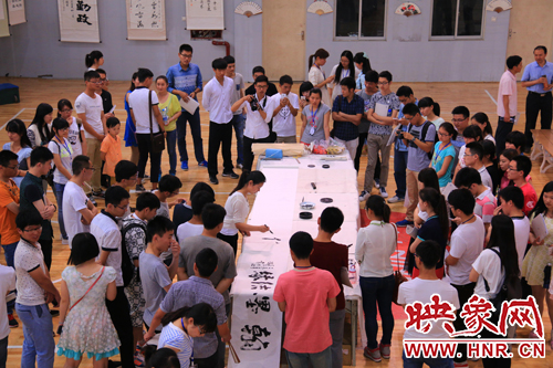 高校學(xué)生代表現(xiàn)場書法展示(丁靚琦/攝)