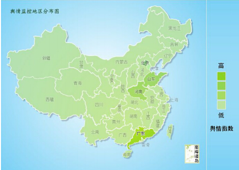 下圖為輿情監(jiān)控地區(qū)分布圖,大象輿情研究院通過(guò)對(duì)此事件相關(guān)報(bào)道網(wǎng)站ICP監(jiān)管所屬地區(qū)的挖掘分析,廣東媒體的傳播活躍度最高,這與廣東地區(qū)歷來(lái)開(kāi)風(fēng)氣之先、敢作敢為的特征相吻合;其次是 北京、山東、河南的媒體。