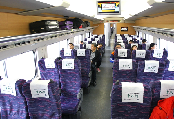 12點(diǎn)02分,記者在鄭州站乘坐C2967次列車再次體驗(yàn),發(fā)現(xiàn)車上的人數(shù)仍舊不多,多節(jié)車廂內(nèi)只有十幾個(gè)人,而2號(hào)車廂竟然空無(wú)一人。17點(diǎn)31分,記者乘坐C2972返程時(shí),車上的人數(shù)則相對(duì)較多,多數(shù)車廂有將近30人,最多的一節(jié)有近40人。