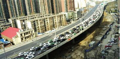 前天,隴海路高架京廣路至紫荊山路段一度被堵城停車場,平時三分鐘的路程竟然走了近40分鐘。原來是施工單位在橋面上擅自占用車道施工,事先沒有向交警部門報備?,F(xiàn)在施工設備已移至地面,今天不會影響高架通行。