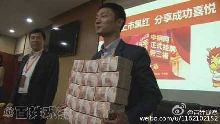 昨天,鄭州某電商公司召開員工“分紅”大會(huì)。老板現(xiàn)場(chǎng)拿出1400萬現(xiàn)金,用來獎(jiǎng)勵(lì)業(yè)績突出的員工。據(jù)說,一捆錢是人民幣10萬,當(dāng)天不少員工都帶著麻袋到現(xiàn)場(chǎng)領(lǐng)錢!?。。?!小編已經(jīng)不知道該說什么,弱弱的問一句,貴公司還招人嗎?