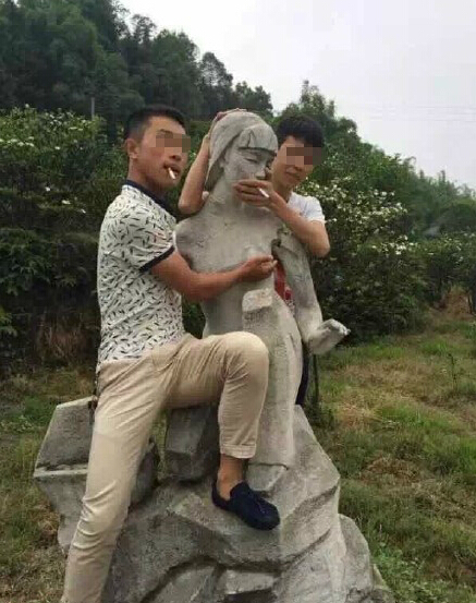四川宜賓趙場佛現(xiàn)山景區(qū)花開正艷,卻出現(xiàn)了與美景相悖的不文明行為。兩男子近日對一婦女雕像又是摟抱又是摸胸。據(jù)了解,雕像是兩年前計(jì)生文化進(jìn)景區(qū)時(shí)設(shè)置的。目前,拍攝時(shí)間和兩男子身份尚不明確??达L(fēng)景還是煞風(fēng)景?