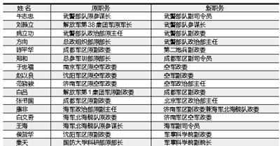 七大軍區(qū)中,南京、成都、北京以及沈陽軍區(qū)的副政委職務(wù)均有變動。例如,成都軍區(qū)原副政委張書國調(diào)往北京軍區(qū)出任政治部主任,接替他的是南京軍區(qū)原副政委白呂;沈陽軍區(qū)的原副政委侯賀華外調(diào)至軍事科學(xué)院;另如,成都軍區(qū)原副政委陳平華調(diào)至二炮任副政委;姚立功也是在武警政治部主任與武警部隊(duì)副政委間調(diào)整。此外,空軍內(nèi)所涉及的副大軍區(qū)級調(diào)整也都是與政治干部有關(guān)系。