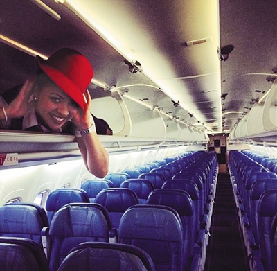 國外航空公司有“空姐進行李架”舉動