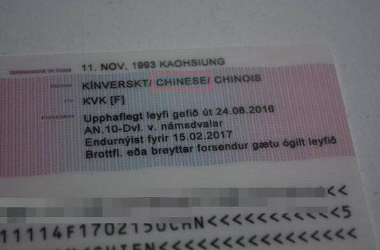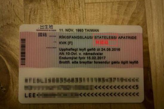 原標(biāo)題:臺灣女生不滿冰島居留證被列中國籍 結(jié)果被改為“無國籍”