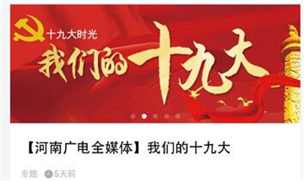 黨的十九大開幕以來,河南廣播電視臺按照中宣部的統(tǒng)一部署,精心策劃,全媒聯(lián)動,推出了特色系列報道——“我們的十九大”,把鏡頭對準(zhǔn)百姓,把版面留給基層,會上會下、場內(nèi)場外一起同頻共振十九大,傳達(dá)了河南人民對“十九大時光”的熱切期盼。