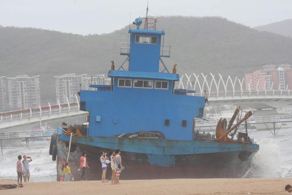2015年6月23日,海南三亞,“鯨魚(yú)”臺(tái)風(fēng)襲擊海南省萬(wàn)寧市,三亞海面大風(fēng)大浪,2艘大型貨輪和一艘旅游船,被刮到了三亞灣沙灘上。