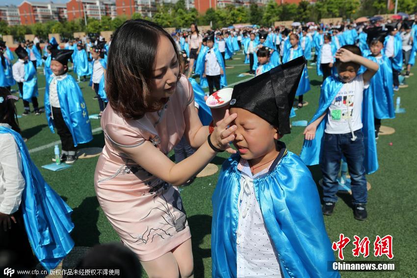 當(dāng)?shù)貢以谌雽W(xué)儀式上為一年級學(xué)生“點(diǎn)朱砂啟智”。 圖片來源:CFP視覺中國