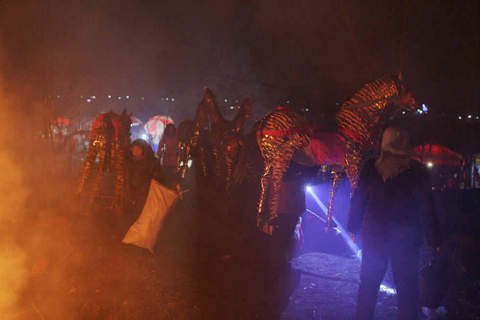 2016年2月23日凌晨,山東省濱州市惠民縣小霹靂莊,宋代古冢牛保冢上一年一度的正月十六祭祀活動(dòng)正式開始,方圓百里萬(wàn)余百姓陸陸續(xù)續(xù)趕來(lái)祭祀,以求風(fēng)調(diào)雨順,家和事興。多種祭祀用紙馬先后被抬上祭壇引燃,化作火龍直沖云天,數(shù)量足有數(shù)千匹之多,場(chǎng)面壯觀且奇異,親臨現(xiàn)場(chǎng)宛若置身神鬼大片,令人印象深刻。