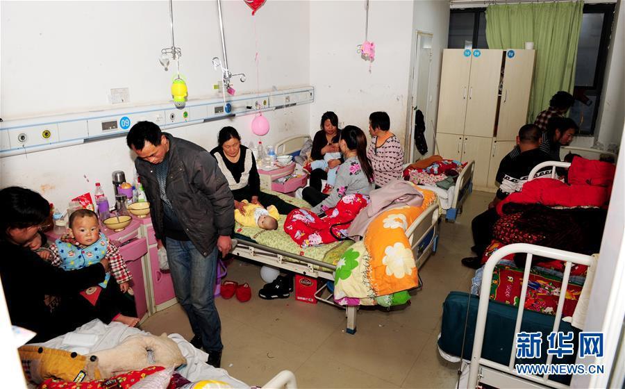 2月22日,在河南省開封市杞縣人民醫(yī)院,原本標配3張床位的15平方米兒科病房被放置了5張床。病兒及家屬共計14人擠在狹小的空間里。新華社發(fā) 馮大鵬 攝 圖片來源:新華網(wǎng)