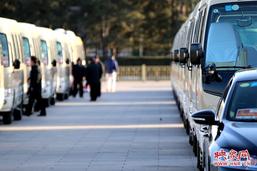 天門廣場上整齊的停放著參會車輛 段晉哲/圖