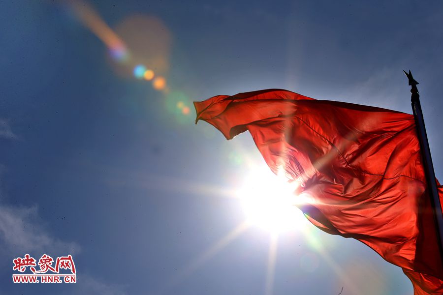 藍天白云下的紅旗飄飄  段晉哲/圖