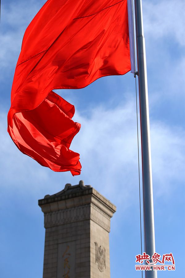 人民英雄紀念碑與紅旗遙相呼應  段晉哲/圖