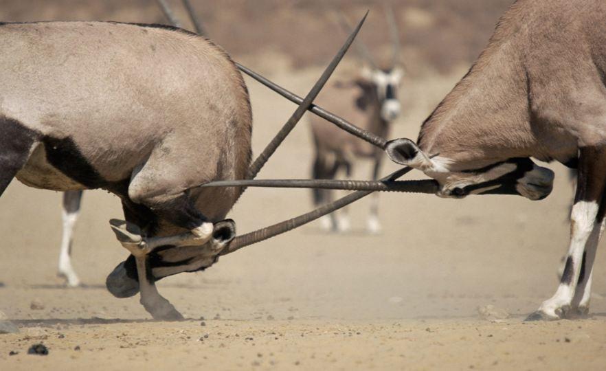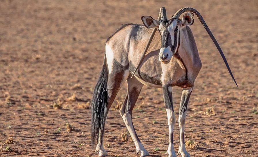 據(jù)英國(guó)《每日郵報(bào)》報(bào)道,一頭雙角筆直下折的母長(zhǎng)角羚在納米比亞野生動(dòng)物園被發(fā)現(xiàn)。盡管與同類顯得格格不入,但是畸形的雙角并未給她帶來很多困擾。