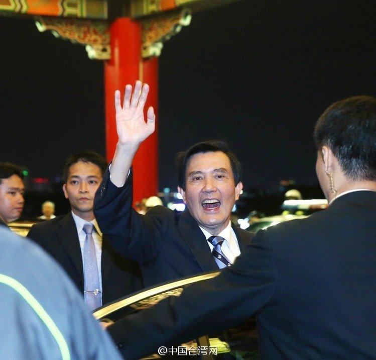 圓山飯店夜宴結束后,馬英九揮手對大家“再見”。