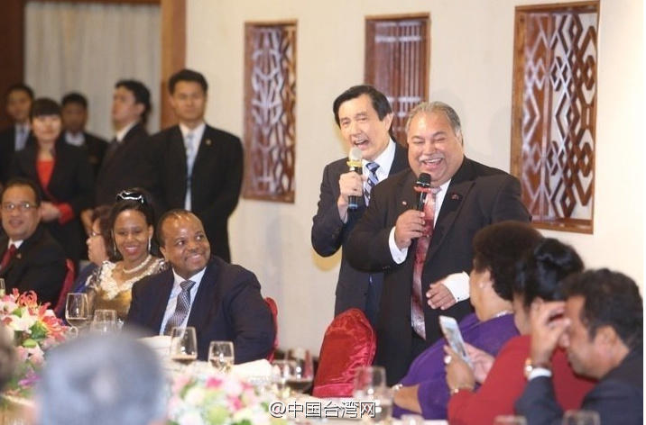 當晚,馬英九在圓山酒店昆侖廳設宴款待外賓,席間一時興起,與瑙魯總統(tǒng)瓦卡合唱了一曲“Let it be me”。隨后開玩笑表示,先前外界問他卸任以后要作什么?自己都宣稱是機密不能透露,今天終于可以宣布,就是要和瓦卡總統(tǒng)合組一個樂團,臺下大笑鼓掌。