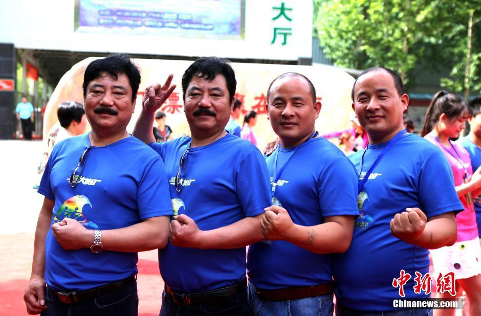 5月29日,河南三門峽,來自全國的老中青100余對雙胞胎聚集一起拍攝合影照,他們手拉手“向天笑”,一樣的裝束、一樣的臉龐,看暈觀眾,仿佛走進了重影的世界。 王中舉 攝
