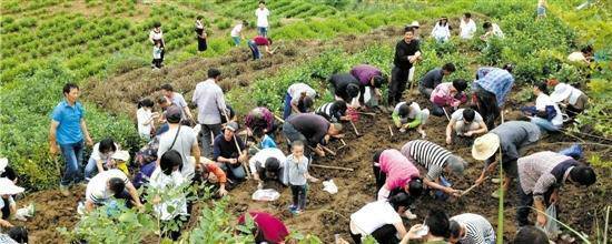 瘋狂到什么程度呢?據(jù)說,不止本地村民,很多新昌人也加入了挖寶的隊列;不僅白天挖,據(jù)說夜里也有不少人在挖,理由是聽說寶石在夜里的燈光照射下能反光,反而更好找;不僅大人挖,小孩和老人的身影也很多。潘先生說,由于是在地里挖的,難免造成一些茶樹,以及玉米、西瓜、花生等莊稼被毀,當(dāng)?shù)卮迕駷榇艘庖姾艽?,但對如潮的尋寶人流,又有些無可奈何。