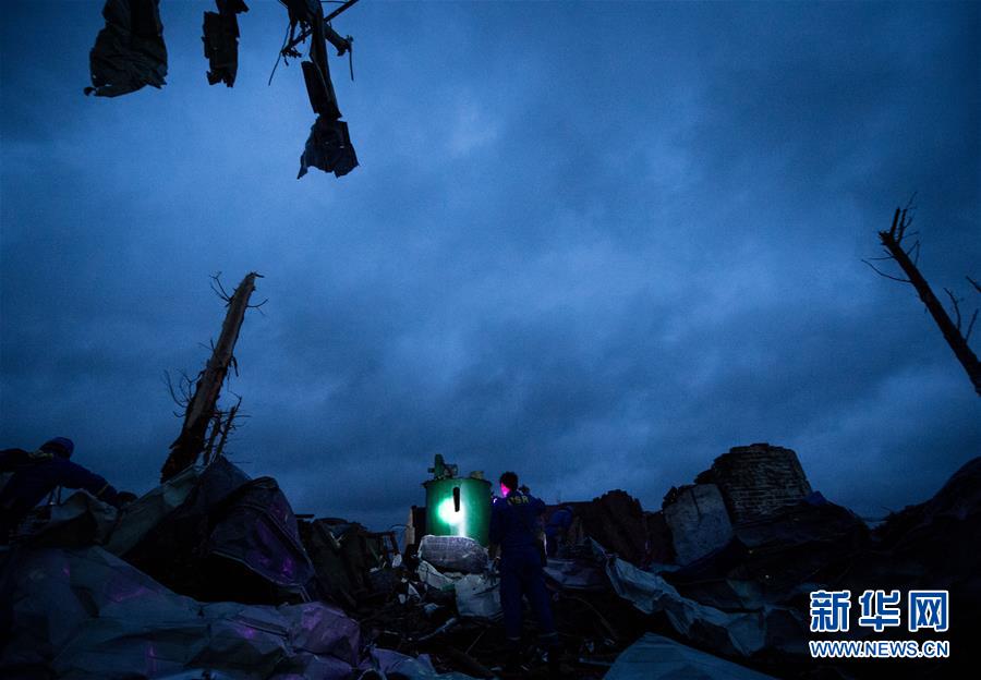 黎明時(shí)分,搜救人員繼續(xù)在江蘇省鹽城市阜寧縣受災(zāi)地區(qū)對(duì)廠房、民居等展開全面排查搜尋,營(yíng)救受災(zāi)群眾。23日下午,江蘇省鹽城市阜寧縣、射陽(yáng)縣部分地區(qū)突發(fā)龍卷風(fēng)冰雹嚴(yán)重災(zāi)害,多個(gè)鄉(xiāng)鎮(zhèn)受災(zāi),造成大量民房、廠房、學(xué)校教室倒塌,部分道路交通受阻。據(jù)初步統(tǒng)計(jì),已造成78人死亡,約500人受傷。