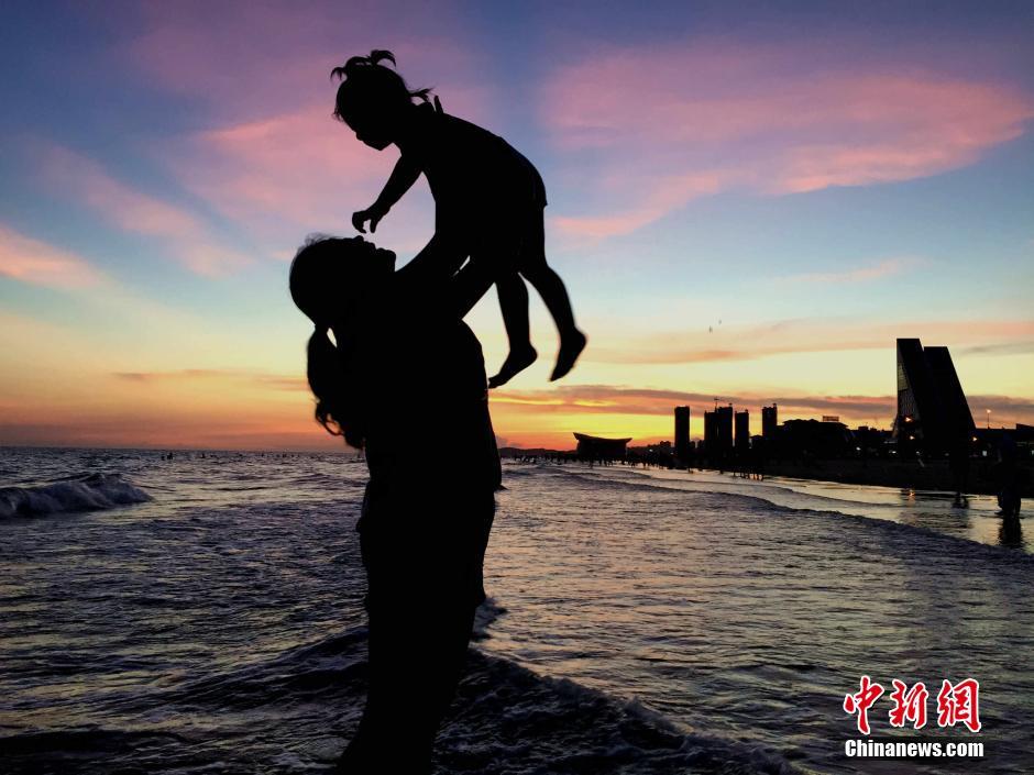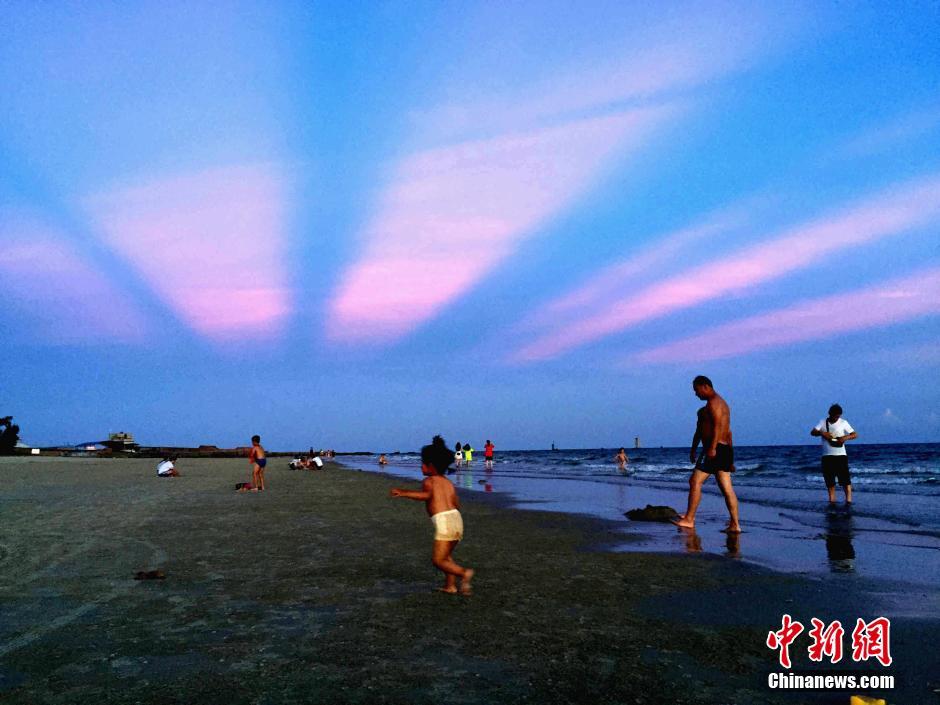 6月27日,廣西北海僑港海灘現(xiàn)晚霞奇觀。受副熱帶高壓影響,廣西連日持續(xù)高溫天氣,而高溫“燒”出的晚霞美景美不勝收,不少市民和游客趁傍晚時(shí)間趕海消暑,欣賞迷人晚霞。據(jù)廣西氣象臺(tái)預(yù)計(jì),未來(lái)幾天高溫持續(xù),28日將進(jìn)入本次高溫的最強(qiáng)階段。中新社記者 翟李強(qiáng) 攝