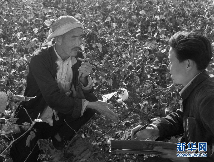 圖為植棉能手吳吉昌(左)在棉田里介紹他的植棉經(jīng)驗。一張照片,定格一個瞬間;一組群像,打開一部史冊。中國共產(chǎn)黨成立95周年之際,我們選取新華社中國照片檔案館珍藏的資料照片,展現(xiàn)中國共產(chǎn)黨人特有的“紅色氣質(zhì)”。新華社發(fā)