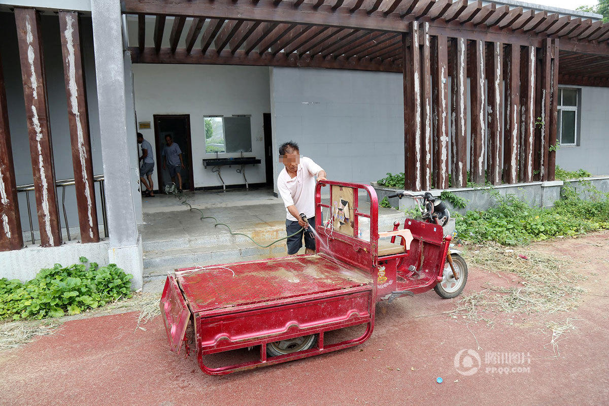 對此,鄭州高新區(qū)市政園林管理局相關(guān)負責人稱,雖西三環(huán)廊道建成3年了,但一直未移交給他們。前不久,施工方剛對其進行了移交,但因附近的城中村拆遷,公廁一直使用臨時電,因電壓不穩(wěn),才一直未對外開放?!斑@幾天,我們再和供電公司溝通一下,爭取盡快通上正式電,恢復公廁正常使用?!痹撠撠熑苏f。圖為幾名工人在用廁所里的水洗車。