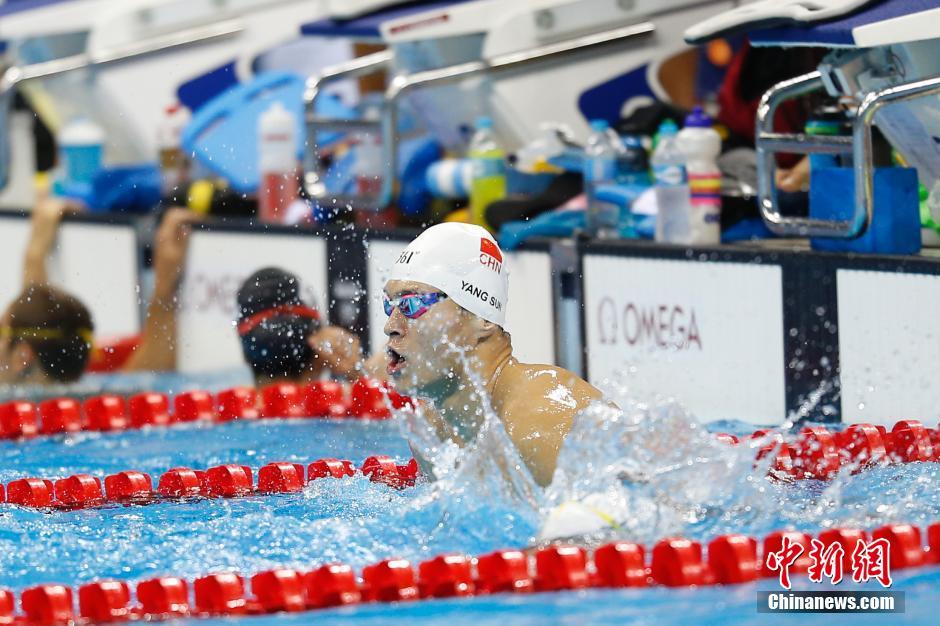 當(dāng)?shù)貢r(shí)間8月4日,里約奧林匹克水上項(xiàng)目體育館,中國(guó)游泳選手孫楊在泳池內(nèi)進(jìn)行賽前訓(xùn)練。中新網(wǎng)記者 盛佳鵬 攝